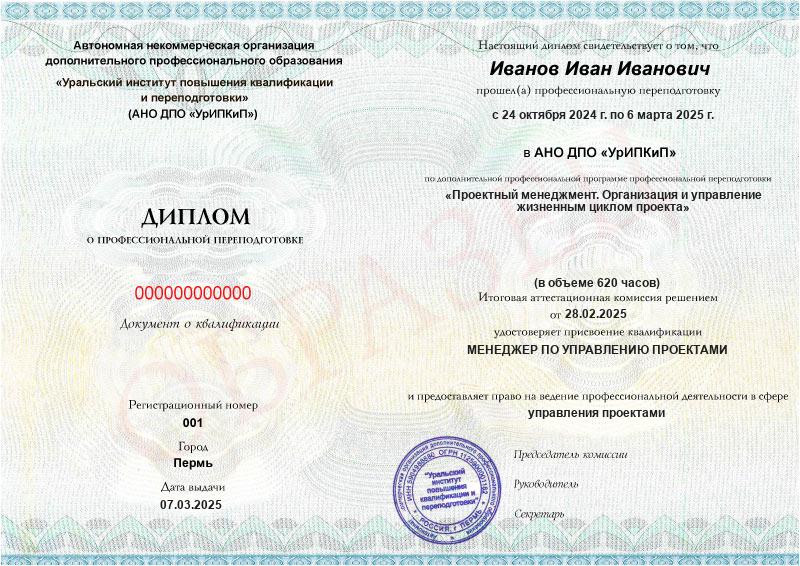 Да, дипломы и удостоверения оформляются в соответствии с действующим законодательством РФ. Документы печатаются на специальных бланках, заверяются печатью АНО ДПО «УрИПКиП».