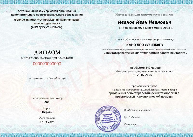 Да, дипломы и удостоверения оформляются в соответствии с действующим законодательством РФ. Документы печатаются на специальных бланках, заверяются печатью АНО ДПО «УрИПКиП».