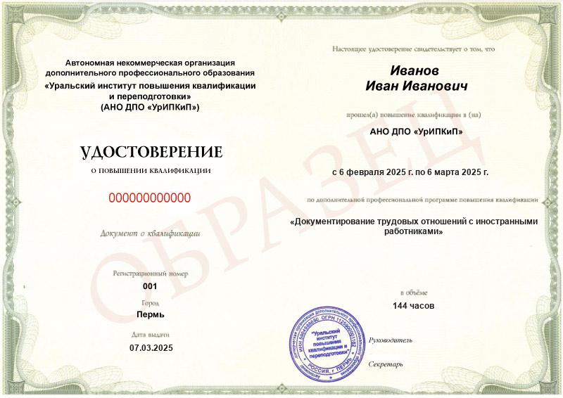 Вы без ошибок сможете оформлять трудовые отношения с участием иностранцев. Ваши навыки подтвердит удостоверение о повышении квалификации государственного образца, которое вы получите после прохождения итогового тестирования.